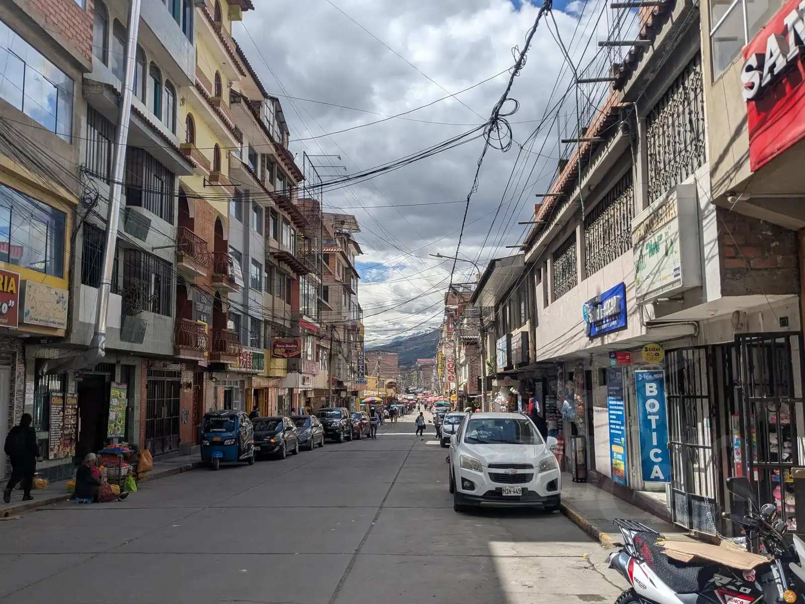 Huaráz není zdaleka tolik turistický a upravený jako části Limy, kde jsme se pohybovali. Domy jsou rozestavěné, ulice špinavé, chodníky s dírami. Na okrajích chodníků sedají místní ženy v barevných oblecích s klobouky a prodávají cokoliv, co si dovedete představif - ovoce, pečivo, kuřata, teplé jídlo, oblečení… Takhle ráno jsme odolali nákupům a jen došli k našemu ubytování.