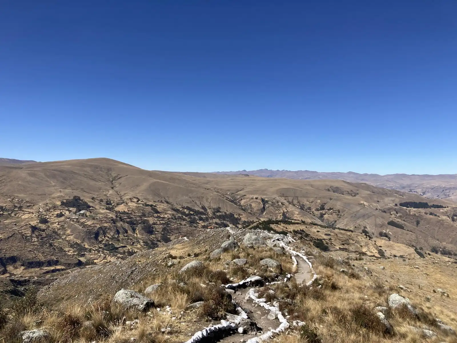 Cesta dolů byla také náročná, naštěstí jsme alespoň našli alternativní cestu, kde se nemusí lézt na lanech. Dolů to i přes únavu šlo naštěstí rychleji a za hodinu a půl (i se spoustou vynucených přestávek) jsme sešli dolů k parkovišti, kde už čekalo collectivo. Nasedli jsme a vydali se zpět do Huarázu. Když jsme tam dojeli, nebylo nám ani jednomu nejlíp. Došli jsme na ubytování, Magda si šla okamžitě lehnout a Martin na velmi pomalou procházku po okolí na zklidnění žaludku. Procházka (s Colou zakoupenou cestou) naštěstí pomohla. Ale i tak to bylo pro ten den zhruba všechno.