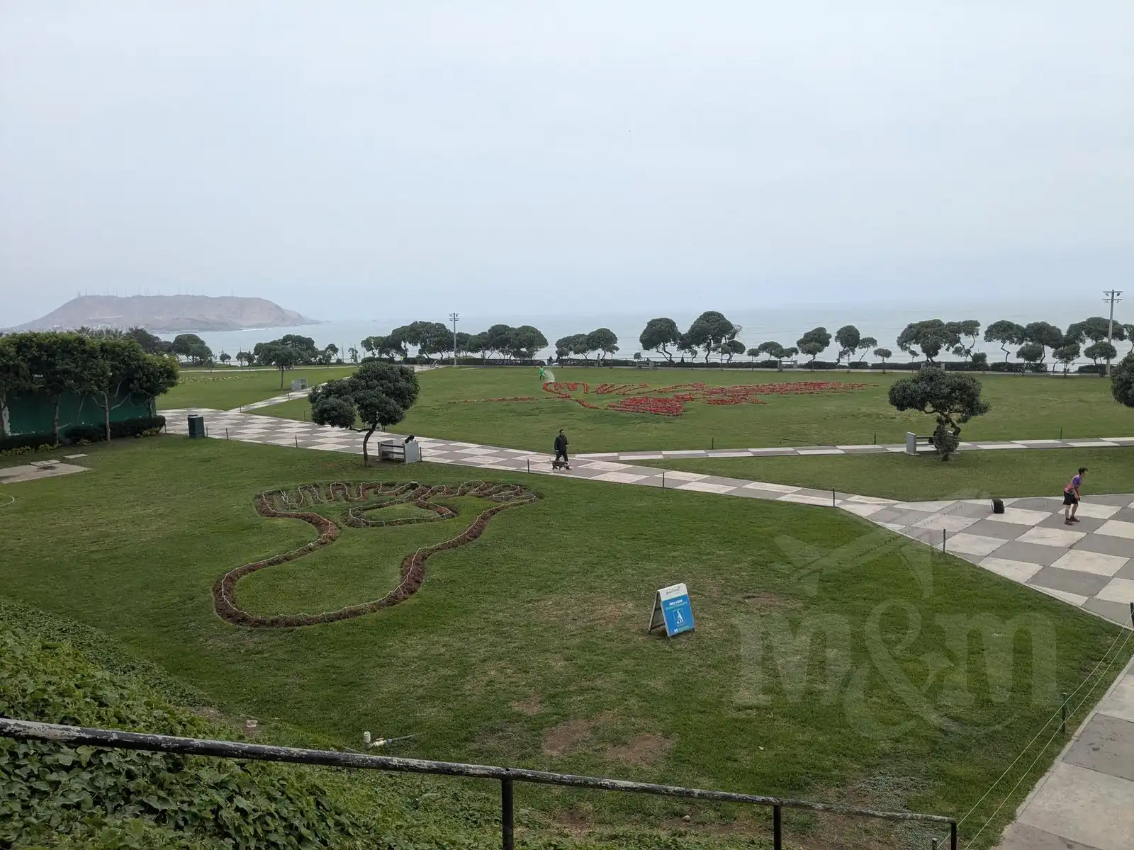 Vydali jsme se na procházku po pobřežních parcích, které se táhnou po útesech nad oceánem. V Parque el Libro nás potěšila lavička Václava Havla – milé překvapení takhle daleko od domova. U Parku lásky, Parque del Amor mě asi nejvíc zaujal plot kompletně obsypaný zámečky zamilovaných. Říkal jsem si, že by to byla práce pro Janka Rubeše. O kousek dál je park Maria Reiche (v té době jsme ještě nevěděli, kdo to byl), kde jsou z květin vysázeny obrazce známé z Nascy. Při celkem slušném počasí to byla příjemná procházka.