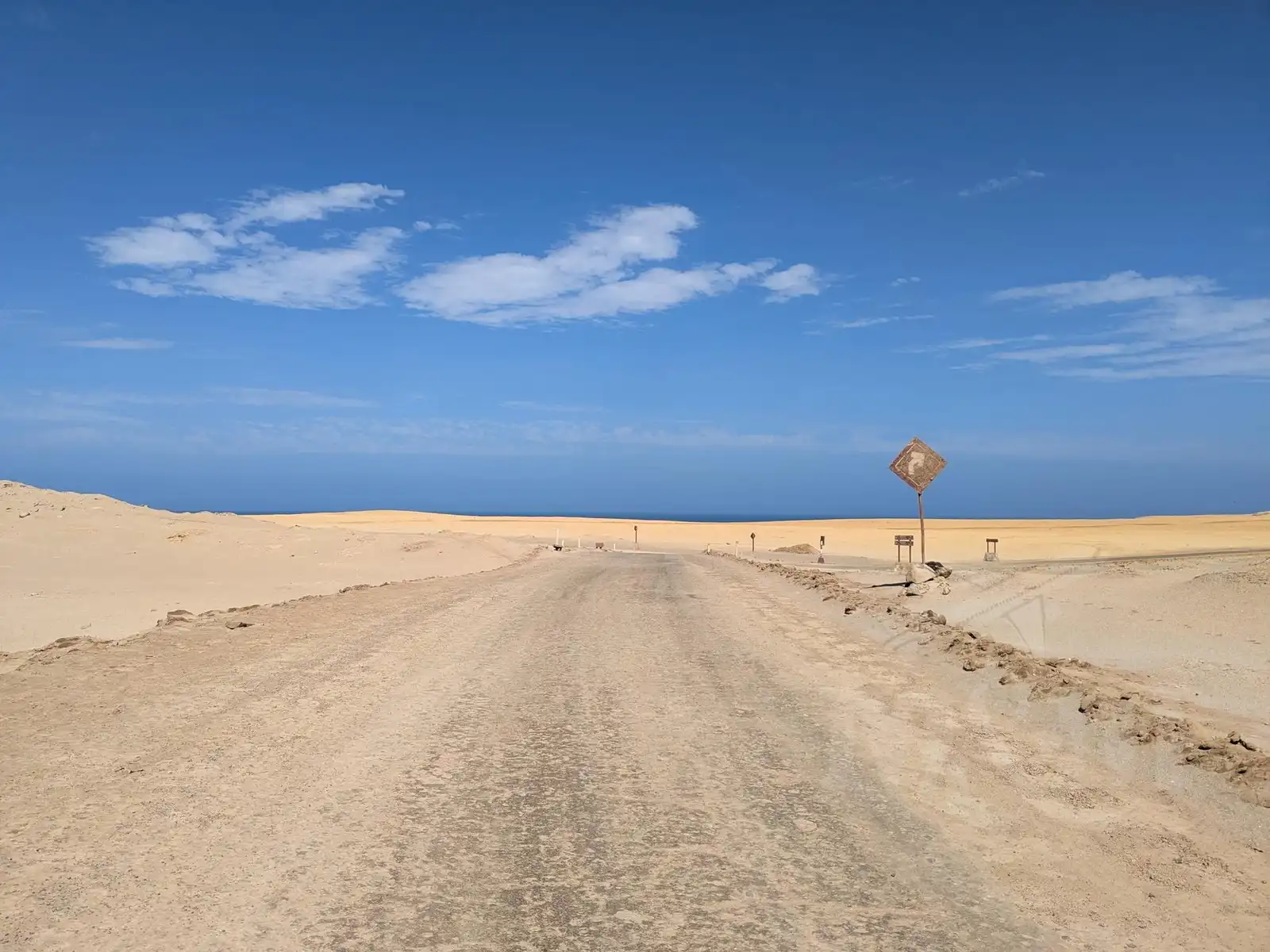 Rozhodujeme se, že si druhý den půjčíme kola a prozkoumáme pouštní rezervaci na poloostrově. Na Google Maps nacházíme půjčovnu se skvělými recenzemi. Kola jsou v dobrém stavu a za férovou cenu, tak si je zamlouváme. Po snídani vyrážíme. Jízda na kole pouští je fascinující zážitek – písek je všude kolem (a za chvíli i v puse a očích). Ze začátku to jde dobře, ale u pobřeží už fouká nepříjemný vítr. Výhledy na poušť padající do moře jsou ale naprosto nádherné.